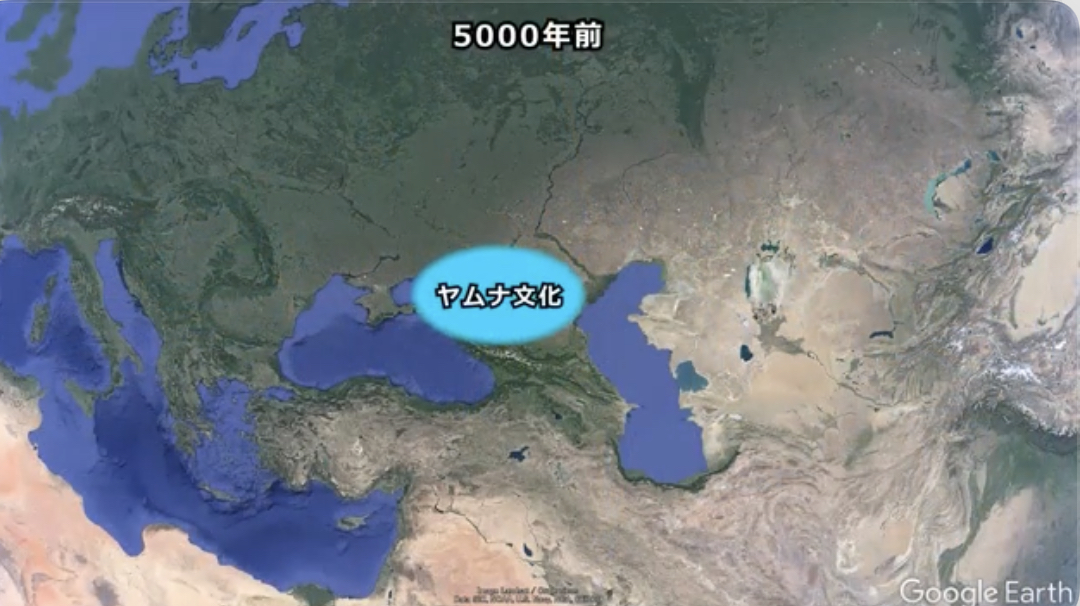 ステップ地帯遊牧民は馬の家畜化と荷車の開発によって広大な地域に広がり、ヤムナ文化を形成しヨーロッパへ広がっていきます。