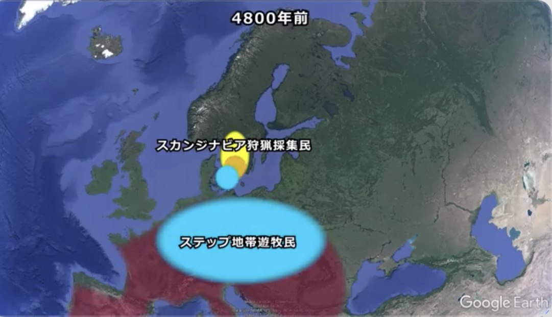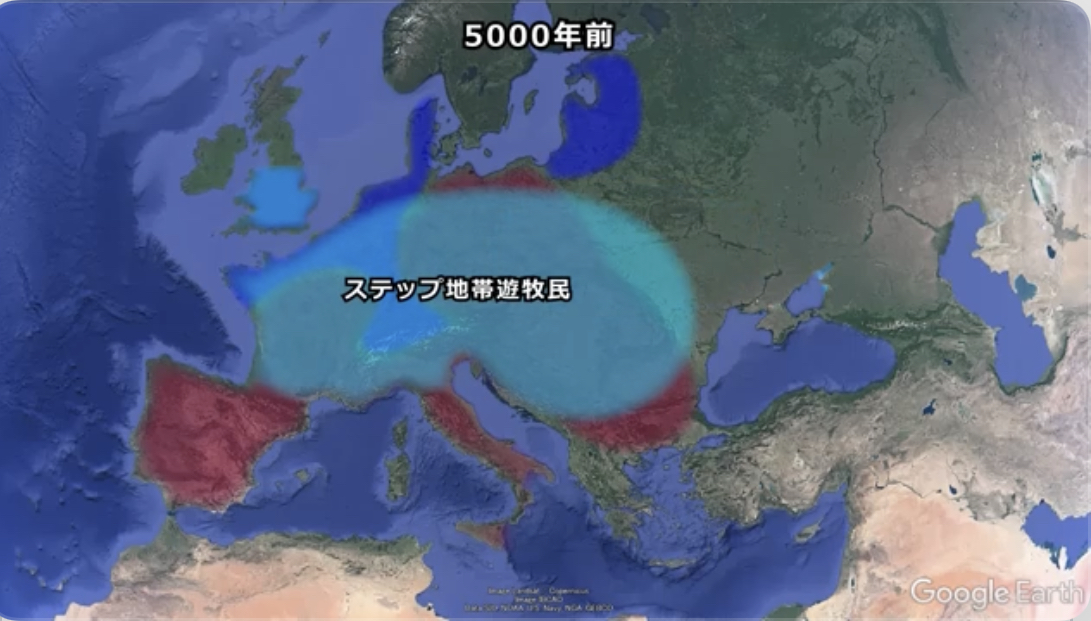 5000年前のヨーロッパはペスト流行で人口が激減しており、ステップ地帯遊牧民は短期間でヨーロッパ全域に拡大していきます。